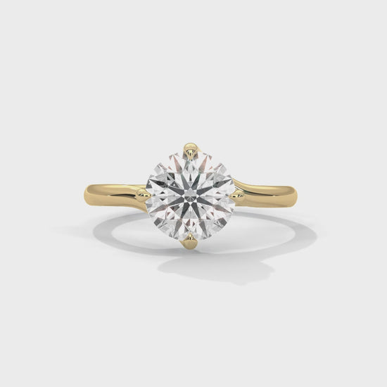 Celebrate your unique love story with this captivating lab-grown diamond solitaire. Featuring a brilliant round cut secured in a graceful, 14K gold split-shank band, this ring offers a contemporary "twist" on the classic engagement style. The delicate intertwining of the band symbolizes two lives becoming one, making it the perfect centerpiece for a lifetime of unity. All rings are custom made to order.